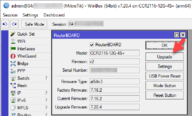 - RouterBOARD Current Firmware совпадает с Upgrade Firmware.