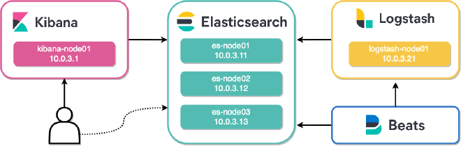 В текущей статье описывается кластер собранный из трех нод с Elasticsearch, а Logstash и Kibana будут установлены на первую ноду.